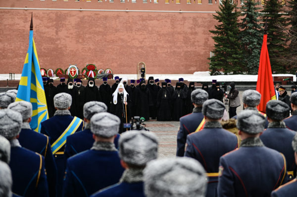 Συγχαίροντας τους Ρώσους στρατιώτες για την Ημέρα του Υπερασπιστή της Πατρίδας, στις 23 Φεβρουαρίου 2022, ο Μακαριώτατος Πατριάρχης Μόσχας και πασών των Ρωσιών κ.κ. Κύριλλος κατέθεσε στεφάνι στον τάφο του Άγνωστου Στρατιώτη στον Κήπο του Αλεξάνδρου κοντά στα τείχη του Κρεμλίνου της Μόσχας.