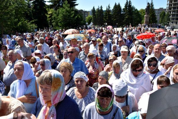 Στον καθεδρικό ναό των Αγίων Πέτρου και Παύλου μετά τη Θεία Λειτουργία έγινε η λιτάνευση της Ιεράς εικόνας των Αγίων, η οποία είναι η πολυπληθέστερη στο Καζαχστάν.