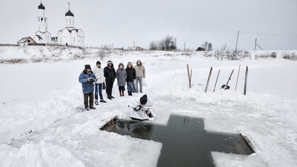 Στη Ρωσία τα Θεοφάνεια η παράδοση θέλει τους πιστούς να βουτούν σε παγωμένα νερά, τις περισσότερες φορές μπαίνοντας σε μια τρύπα πάγου, που έχει ανοιχθεί σε σχήμα σταυρού σε κάποια παγωμένη λίμνη ή ποτάμι!