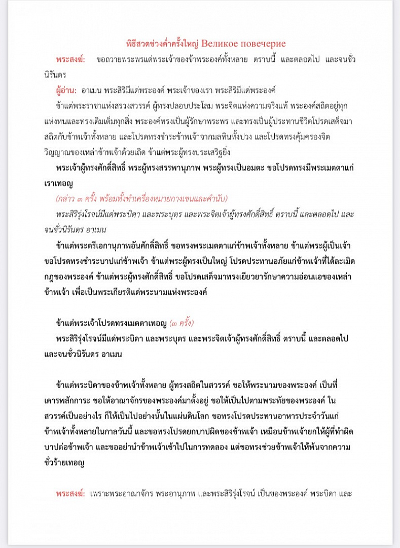 Με την ευλογία του Πατριαρχικού Εξάρχου της Νοτιοανατολικής Ασίας, Μητροπολίτη Σιγκαπούρης και της Νοτιοανατολικής Ασίας, του Πατριαρχείου Μόσχας ολοκληρώθηκε και δημοσιεύθηκε η μετάφραση στα ταϊλανδέζικα της Ακολουθίας του Μεγάλου Κανόνα Αγίου Ανδρέα Κρήτης.