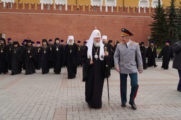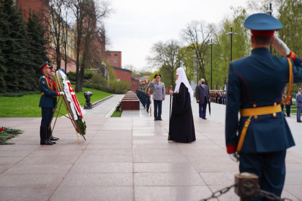 Χθες, 8 Μαΐου 2022, ο Μακαριώτατος Πατριάρχης κατέθεσε στεφάνι στον Τάφο του Άγνωστου Στρατιώτη στον Κήπο του Αλεξάνδρου κοντά στο Τείχος του Κρεμλίνου.