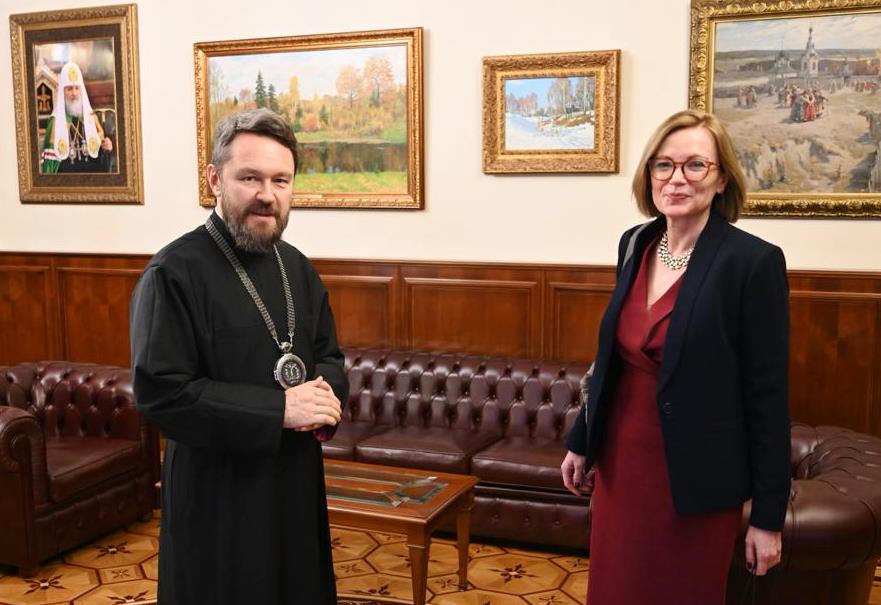 Με την Πρέσβη του Ηνωμένου Βασιλείου στη Ρωσία, D. Bronnert, συναντήθηκε χθες ο Πρόεδρος του Τμήματος Εξωτερικών Εκκλησιαστικών Σχέσεων του Πατριαρχείου Μόσχας, Μητροπολίτης Βολοκολάμσκ κ. Ιλαρίων.