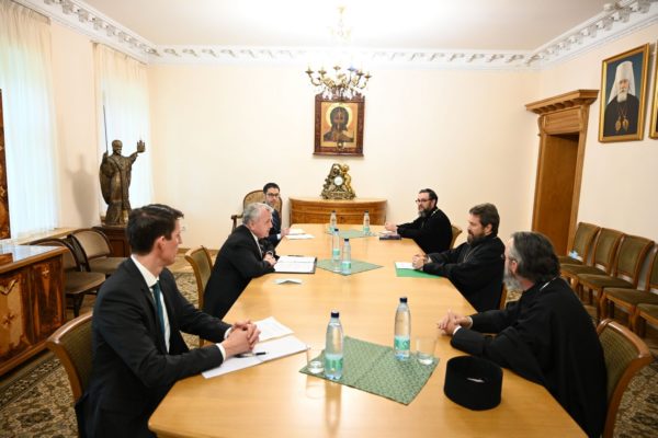 Συνάντηση με τον Πρέσβη των Ηνωμένων Πολιτειών Αμερικής στη Ρωσία, Τζον Σάλιβα, είχε χθες, Τετάρτη 15 Σεπτεμβρίου, ο Πρόεδρος του Τμήματος Εξωτερικών Εκκλησιαστικών Σχέσεων του Πατριαρχείου της Μόσχας, Μητροπολίτης Βολοκολάμσκ κ. Ιλαρίων.