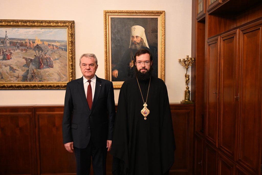 Ο Πρόεδρος του Τμήματος Εξωτερικών Εκκλησιαστικών Σχέσεων (ΤΕΕΣ) του Πατριαρχείου Μόσχας, Μητροπολίτης Βολοκολάμσκ κ. Αντώνιος υποδέχθηκε σήμερα, Τετάρτη 28 Μαΐου, 2025, τον Πρόεδρο του κόμματος «Εναλλακτική για τη Βουλγαρική Αναγέννηση» Ρούμεν Πέτκοφ.