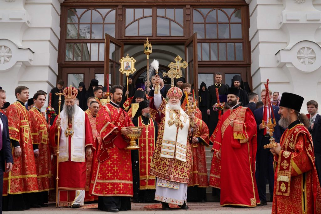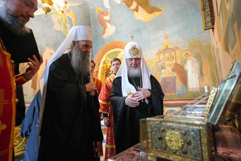 Στη συνέχεια, οι Προκαθήμενοι της Ρωσικής και της Σερβικής Ορθόδοξης Εκκλησίας τέλεσαν αγιασμό στον Καθεδρικό Ναό της Κοιμήσεως της Θεοτόκου.