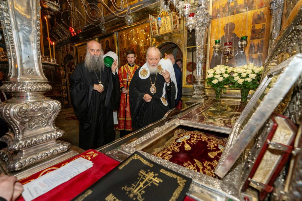 Αμέσως μετά τη Θεία Λειτουργία οι δύο Προκαθήμενοι προσκύνησαν την λάρνακα του Αγίου Σεργίου του Ραντονέζ και τα ιερά λείψανα τα οποία φυλάσσονται στη Μονή.