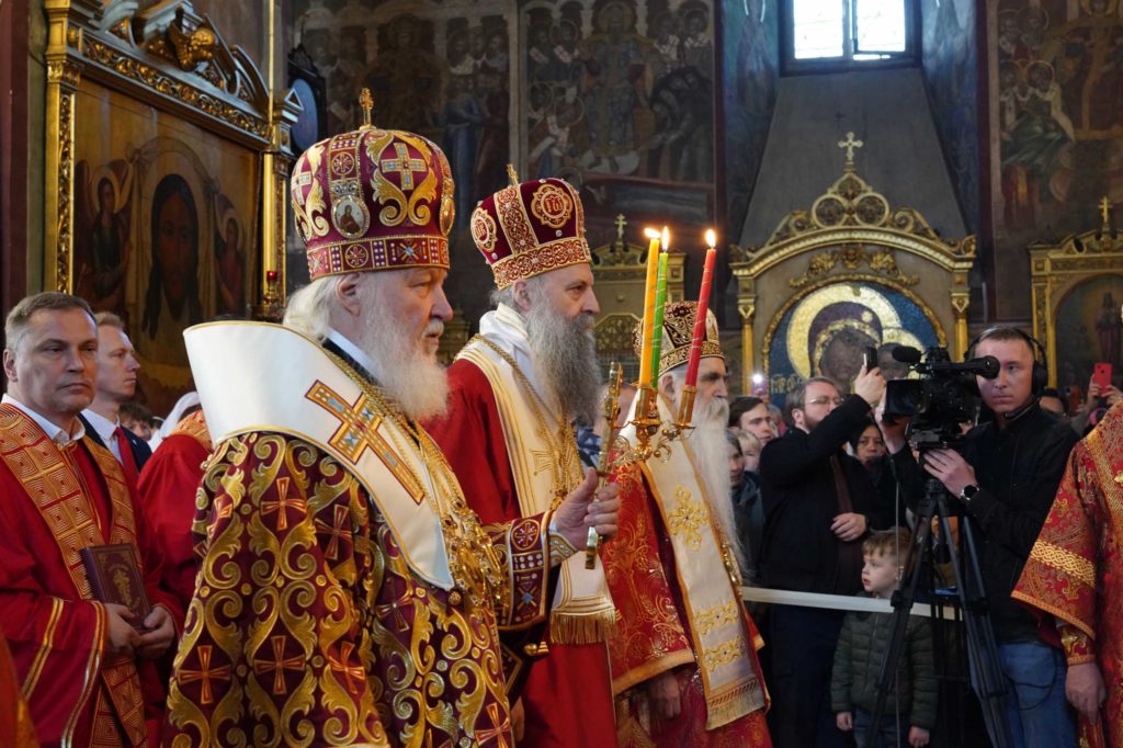 Με τους Πατριάρχες Μόσχας κ.κ. Κύριλλο και Σερβίας κ.κ. Πορφύριο συλλειτούργησαν Ιεράρχες της Ρωσικής Εκκλησίας καθώς και τα μέλη της σερβικής αντιπροσωπείας τα οποία συνοδεύουν τον Μακαριώτατο στο ταξίδι του στη Μόσχα, μεταξύ αυτών και ο Αρχιεπίσκοπος Νόβι Σαντ και Μητροπολίτης Μπάτσκας κ. Ειρηναίος.