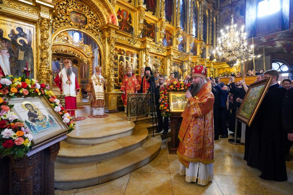 Ο Ηγούμενος της Μονής, Επίσκοπος κ. Κύριλλος εκ μέρους των αδελφών της Λαύρας, χαιρέτησε τους Προκαθημένους της Ρωσικής και Σερβικής Ορθόδοξης Εκκλησίας. Ο Επίσκοπος προσέφερε στον Πατριάρχη κ.κ. Κύριλλο έναν πίνακα που απεικονίζει τη Λαύρα, φιλοτεχνημένο από το μέλος της Ένωσης Καλλιτεχνών της Ρωσίας, A. Γκορμπούνοφ, ενώ στον Πατριάρχη κ.κ. Πορφύριο προσέφερε μία εικόνα του Αγίου Σεργίου του Ραντόνεζ.