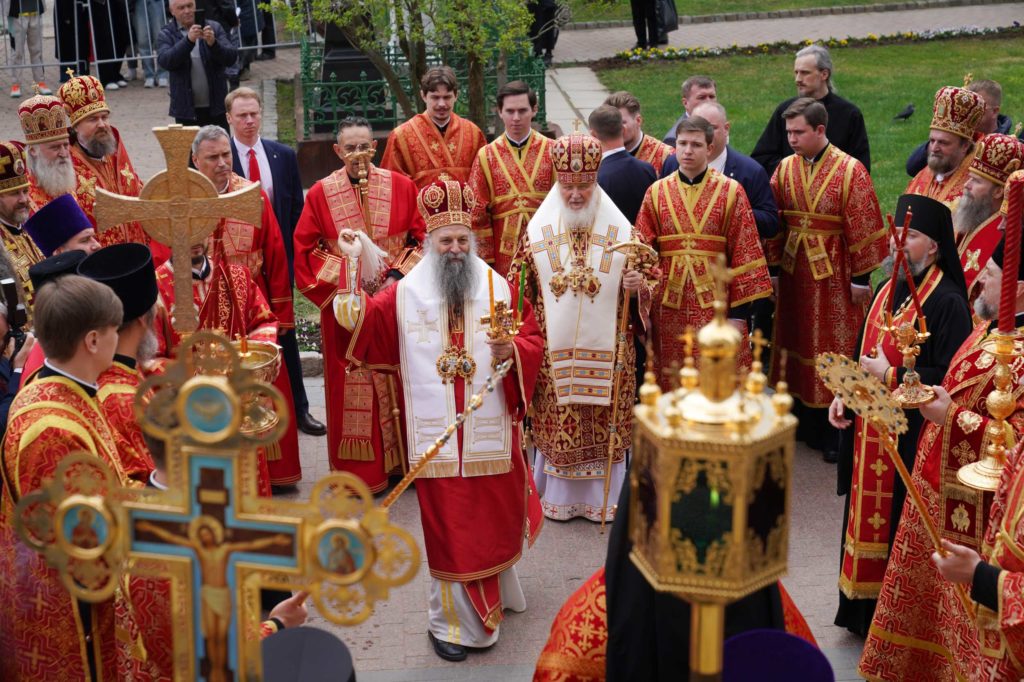 Συλλείτουργό των Προκαθημένων των Εκκλησιών Ρωσίας και Σερβίας τελέστηκε την Παρασκευή της Διακαινησίμου εβδομάδος, 25 Απριλίου 2025, στη Λαύρα της Αγίας Τριάδας του Αγίου Σεργίου.