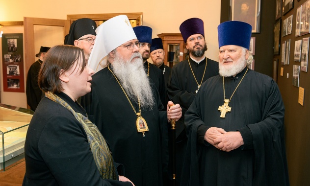 Στην είσοδο του κτιρίου τον Προκαθήμενο της ἐν Αμερικῃ Ορθοδόξου Εκκλησία υποδέχθηκαν ο Πρύτανης του Πανεπιστημίου Πρωθιερέας Βλαδίμηρος Βορομπιόφ, καθηγητές και φοιτητές. Πριν την έναρξη του συμποσίου ο κ. Τύχων ξεναγήθηκε στην έκθεση των νεομαρτύρων και ομολογητών της Εκκλησίας της Ρωσίας, που λειτουργεί στο Πανεπιστήμιο του Αγίου Τύχωνα.