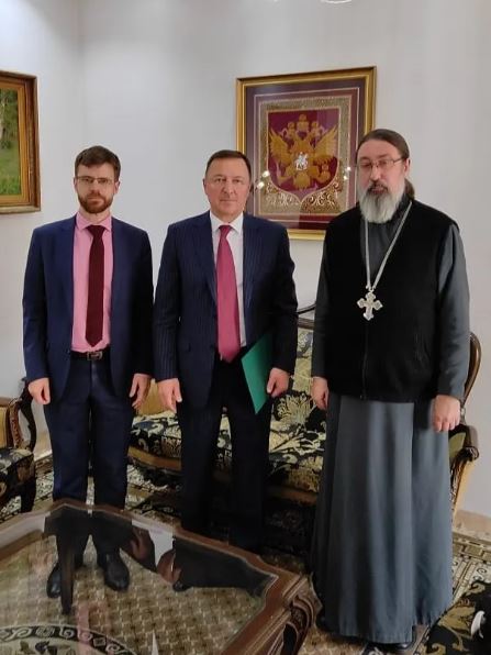 Ο εκπρόσωπος του Πατριάρχη Μόσχας στον Πατριάρχη Αντιοχείας στη Δαμασκό Αρχιμανδρίτης Φίλιππος Βασίλτσεφ επισκέφθηκε τον Πρέσβη της Ρωσίας στη Συρία Αλεξάντερ Εφίμοφ στην κατοικία του στη Δαμασκό την Τετάρτη 15 Φεβρουαρίου 2023.