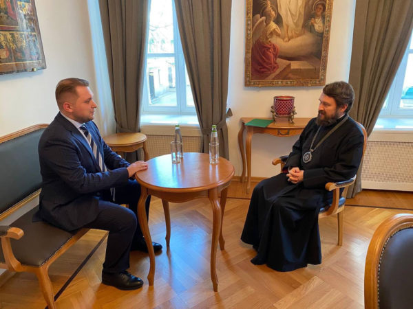 O Μητροπολίτης Βολοκολάμσκ Ιλαρίωνας, Πρόεδρος του Τμήματος Εξωτερικών Εκκλησιαστικών Σχέσεων του Πατριαρχείου Μόσχας, Πρόεδρος του Επιστημονικού και Εκπαιδευτικού Θεολογικού Συλλόγου (NOTA), συναντήθηκε χθες με τον Αντιπρόεδρο της Κρατικής Δούμας της Ομοσπονδιακής Συνέλευσης της Ρωσικής Ομοσπονδίας B.A. Τσερνίσοφ.