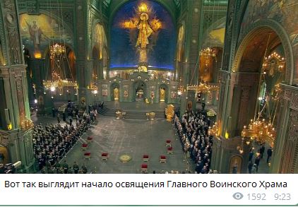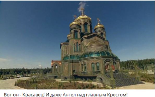 Ο αγιασμός στον κύριο ναό των Ενόπλων Δυνάμεων της Ρωσίας, που είναι αφιερωμένος στην Ανάσταση του Κυρίου, σημαδεύτηκε από ένα θαύμα, όπως αποκαλύπτουν οι πιστοί: πάνω από το τρούλο όλοι πρόσεξαν ένα συννεφάκι σε μορφή αγγέλου (κεντρική φωτό).