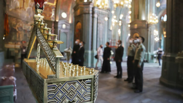 Στην τελετή προεξήρχε ο Πατριάρχης κ.κ. Κύριλλος, που άρχισε την τελετή αμέσως μετά την άφιξη του Υπουργού Αμύνης, Σεργκέι Σοϊγκού. Ο Πατριάρχης μπήκε στον ναό, κρατώντας Ιερά Λείψανα.
