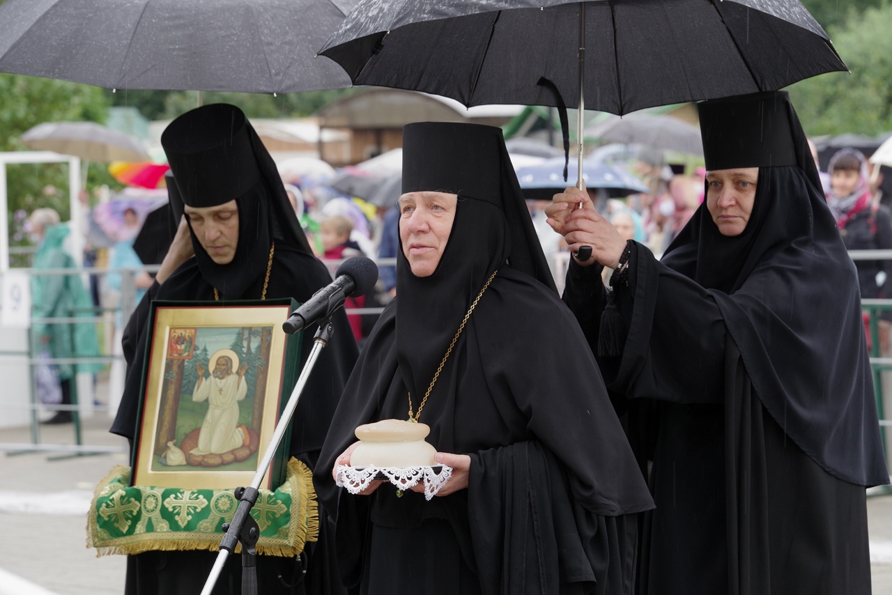 Την 1η Αυγούστου του 2020, ανήμερα της αποκομιδής των λειψάνων του Αγίου Σεραφείμ του Σάρωφ του θαυματουργού, στην Ιερά Μονή της Αγίας Τριάδος και του Αγίου Σεραφείμ του Σάρωφ ο Μητροπολίτης Αγίας Πετρούπολης και Λάντογκας κ. Βαρσανούφιος χοροστάτησε στην Θεία Λειτουργία στην πλατεία των ναών του μοναστηριού συλλειτουργούντων πολλών Αρχιερέων και κληρικών. Την Λειτουργία παρακολούθησαν πολιτικά πρόσωπα, αξιωματούχοι και επιχειρηματίες ενώ προσεύχονταν οι μοναχές του μοναστηριού.