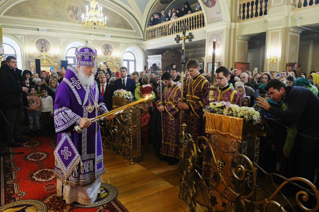 Το Σάββατο ο Πατριάρχης κ.κ. Κύριλλος χωροστάτησε στη Λειτουργία στη γυναικεία Ιερά Μονή της Αγίας Τριάδας και της Οδηγήτριας. Στο ναό της Αγίας Τριάδος ο Προκαθήμενος της Ρωσικής Ορθόδοξης εκκλησίας της Ρωσίας τέλεσε τη Θεία Λειτουργία. Μαζί με τον Πατριάρχη συλλειτούργησαν ο Αρχιεπίσκοπος Εγκόριεβσκ κ. Ματθαίος, ηγούμενος της Μεγάλης Λάβρας της Αγίας Τριάδας, επίσκοπος Σέργκιεφ Ποσάντ Παραμών, ιερείς της Λάβρας και της Όπτινα.