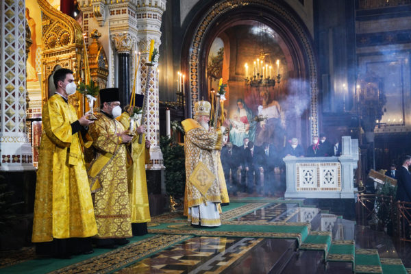 Στον Καθεδρικό Ναό του Σωτήρος Χριστού στη Μόσχα τέλεσε -από χθες το βράδυ έως σήμερα το πρωί- όλες τις ακολουθίες των Χριστουγέννων (Μεγάλες Ώρες, Όρθρο και πανηγυρική Θεία Λειτουργία) ο Μακαριώτατος Πατριάρχης Μόσχας και πασών των Ρωσιών κ.κ. Κύριλλος.