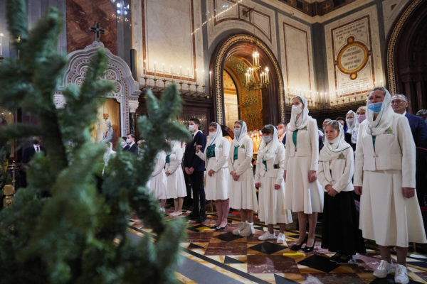 Σύμφωνα με την παράδοση, πριν την έναρξη της εορταστικής Θείας Λειτουργίας, ο Προκαθήμενος της Ρωσικής Ορθόδοξης Εκκλησίας απηύθυνε στους τηλεθεατές τις ευχές του: