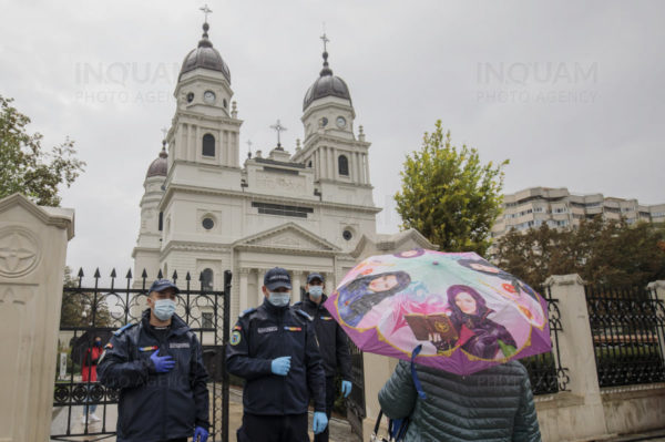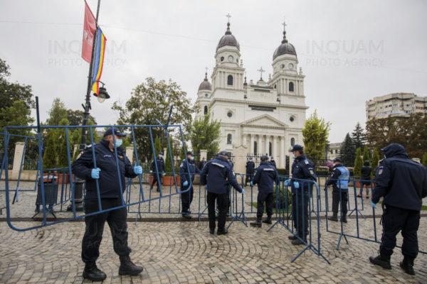Χωροφύλακες βρίσκονται έξω από τον Καθεδρικό Μητροπολιτικό Ναό του Ιασίου, που είναι αφιερωμένος στην Αγία Παρασκευή, και εμποδίζουν τον κόσμο να προσκυνήσει τα ιερά λείψανα της Αγίας… Αυτό συμβαίνουν σε όσους επιτρέπεται να περάσουν εντός του ναού, αφού οι εντεταλμένοι της χωροφυλακής, πρώτα, κάνουν έλεγχο στις ταυτότητες των πιστών, επιτρέποντας την είσοδο μόνο στους κατοίκους της περιοχής.
