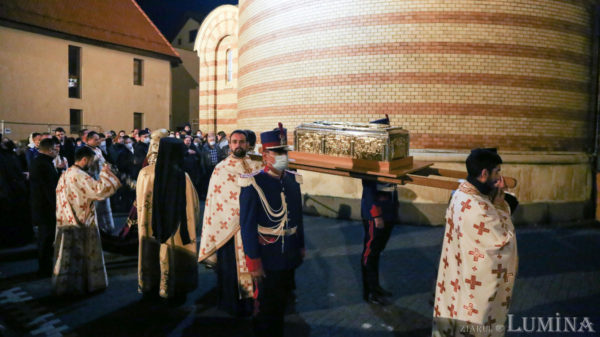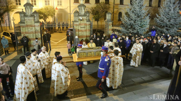 Την παραμονή της εορτής, Δευτέρα 29 Νοεμβρίου, πραγματοποιήθηκε η περιφορά του ιερού λειψάνου του Αγίου Ανδρέα Σαγκούνα πέριξ του Ιερού Καθεδρικού Ναού του Σίμπιου, προεξάρχοντος του Σεβασμιωτάτου Αρχιεπισκόπου Σίμπιου και Μητροπολίτη Τρανσυλβανίας κ. Λαυρεντίου.