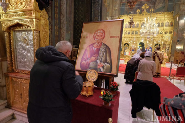 Οι εορταστικές εκδηλώσεις προς τιμή του Αγίου ξεκίνησαν χθες στον Καθεδρικό Ναό στο Βουκουρέστι με την τέλεση ιεράς αγρυπνίας κατά τη διάρκεια της οποίας τέθηκε προς προσκύνηση τεμάχιο ιερού λειψάνου του Αγίου Αποστόλου Ανδρέου.