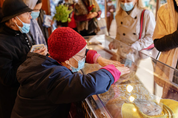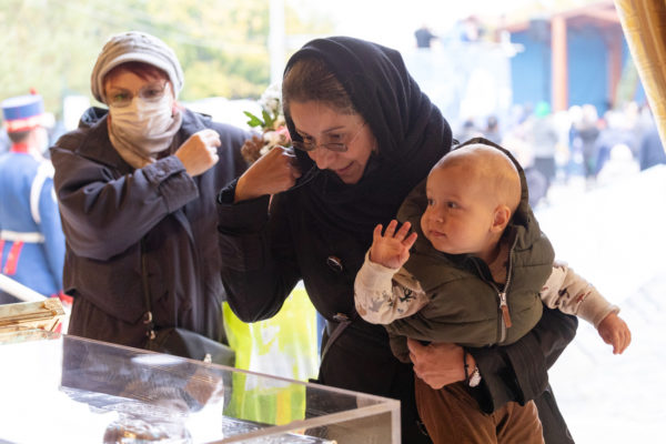 Σήμερα, δεύτερη ημέρα του προσκυνήματος στον Πατριαρχικό Καθεδρικό Ναό περίπου 200 άτομα παρευρέθηκαν στη Θεία Λειτουργία σε ειδικά διαμορφωμένο χώρο μπροστά από τον Ναό για να τιμήσουν τον Άγιο Δημήτριο.