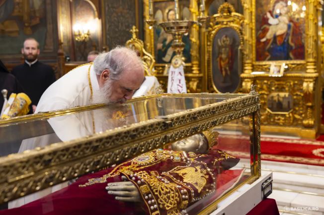 “Είναι μεγάλη χαρά για εμάς, τους Ρουμάνους, που σήμερα, 30 Απριλίου, τα ιερά λείψανα βρίσκονται για λίγες ώρες στον Πατριαρχικό Καθεδρικό Ναό στο Βουκουρέστι, προστατευμένα ακριβώς από τους Αγίους Αυτοκράτορες Κωνσταντίνο και Ελένη, προσφέροντάς μας έτσι την ευκαιρία να προσκυνήσουμε με ευλάβεια και να λάβουμε την ευλογία αυτής της μεγάλης αγίας, η οποία τιμάται ως ισαπόστολος», δήλωσε ο Πατριάρχης κ.κ. Δανιήλ.