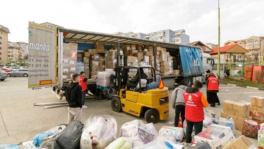 Συγκεκριμένα, οι εθελοντές από το παρεκκλήσι της Αγίας Παρασκευής φόρτωσαν ένα φορτηγό με 14 τόνους ανθρωπιστικής βοήθειας που συγκέντρωσε η Αρχιεπισκοπή Ιασίου για την περιοχή Τσερνιβτσί της Ουκρανίας, όπου ζουν πολλοί Ρουμάνοι.