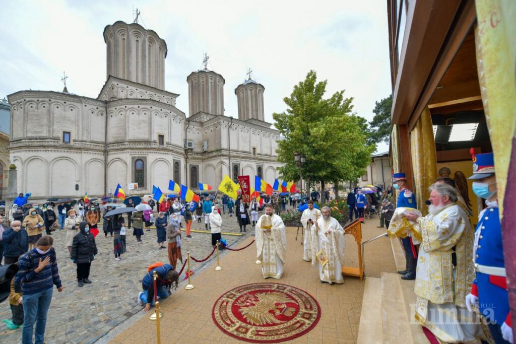 Σήμερα το πρωί, στη Θεία Λειτουργία συμμετείχαν οι πιστοί του Βουκουρεστίου, αλλά και προσκυνητές από άλλα μέρη, μέλη της Ορθόδοξης Αδελφότητας της Ρουμανίας, ντυμένοι με την εθνική τους ενδυμασία και κρατώντας σημαίες της χώρας στα χέρια τους.