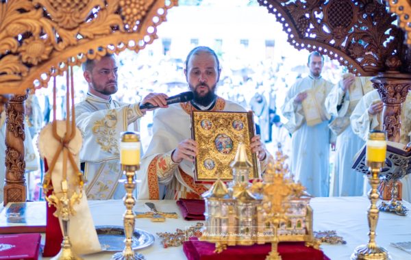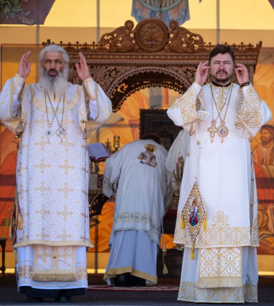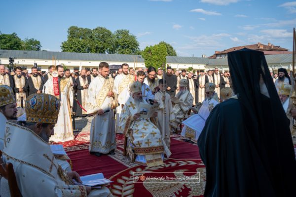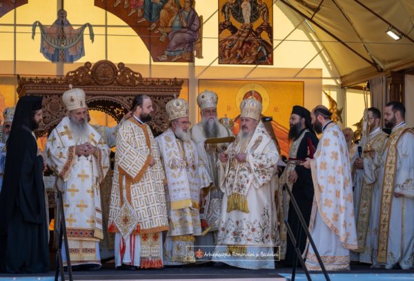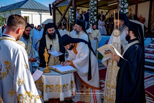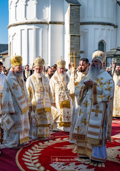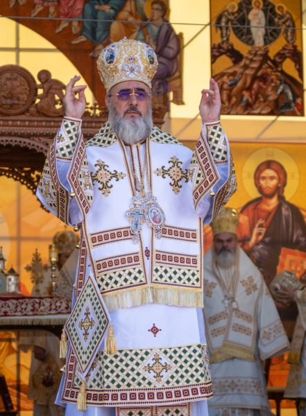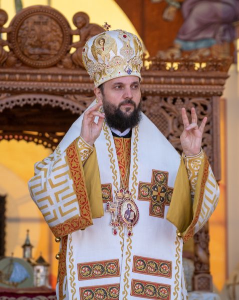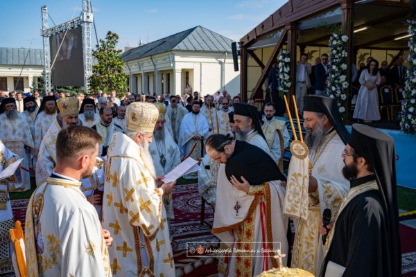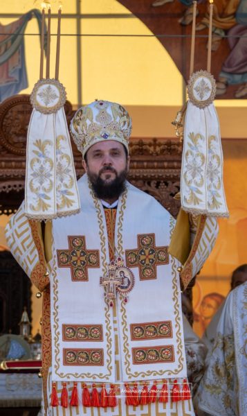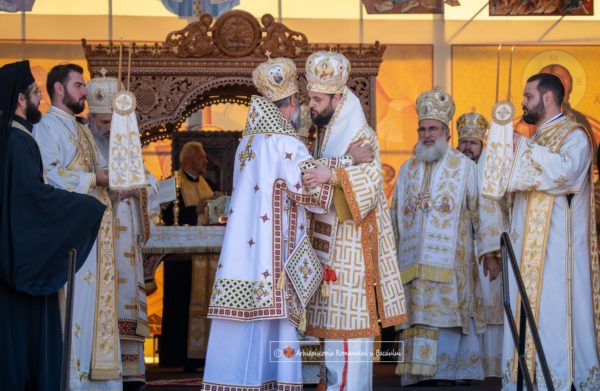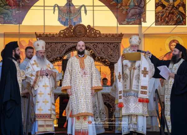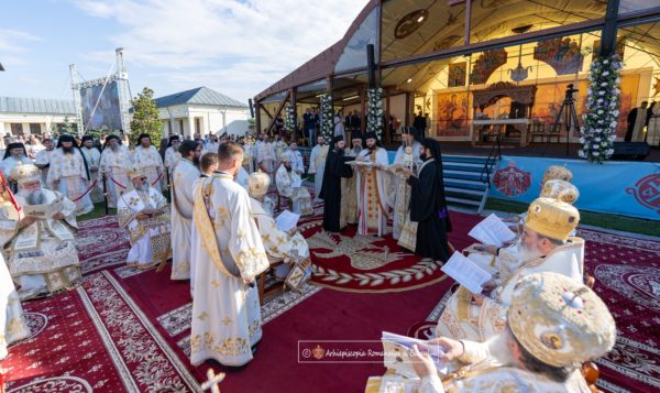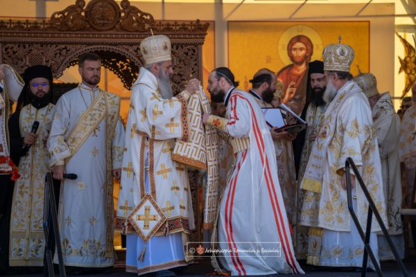 Της υπαίθριας Θείας Λειτουργίας που τελέστηκε πλησίον του Καθεδρικού Ναού προεξήρχε ο Σεβασμιώτατος Αρχιεπίσκοπος Ιασίου και Μητροπολίτης Μολδαβίας και Μπουκοβίνης κ. Θεοφάνης ο οποίος τέλεσε επίσης τη χειροτονία του νέου Επισκόπου.