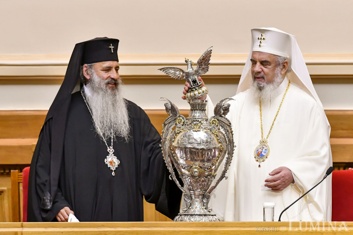 Στο τέλος, τα μέλη της Ιεράς Συνόδου προσέφεραν δώρα στον Μακαριώτατο για τα γενέθλια του καθώς σήμερα, 22 Ιουλίου 2021, ο Πατριάρχης Ρουμανίας γίνεται 70 ετών.