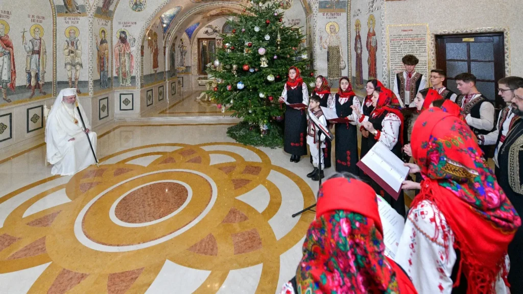 Μικροί και μεγάλοι με παραδοσιακές φορεσιές, χορωδίες καθώς και μπάντες είπαν στον Προκαθήμενο της εν Ρουμανία Ορθοδόξου Εκκλησίας τα πρώτα κάλαντα μεταφέροντας την εορταστική ατμόσφαιρα της περιόδου.