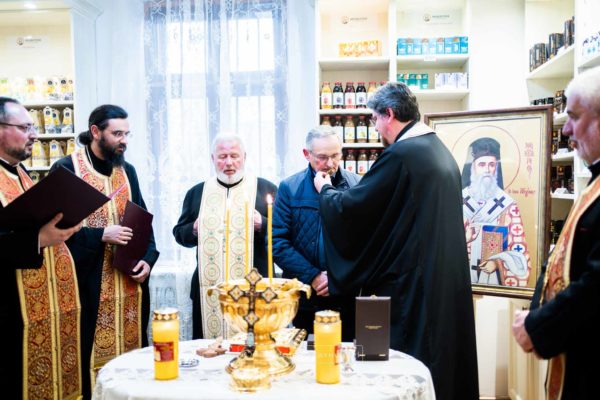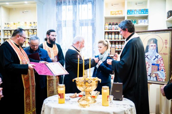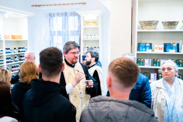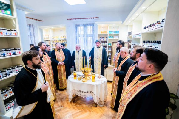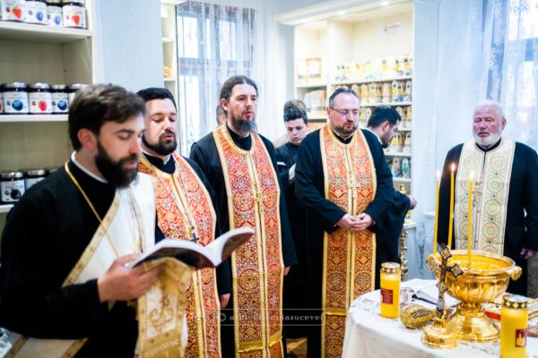Στην Ακολουθία του αγισμού για τα εγκαίνια παρέστησαν υπάλληλοι του καταστήματος (ιατροί, φαρμακοποιοί, συνεργάτες), ο π. Iustin Tănase, σύμβουλος στον Τομέα Κοινωνικής και Ιατρικής Βοήθειας της Αρχιεπισκοπής Σουτσεάβας και Ραουντίου, και άλλοι γονείς από το Επισκοπικό Κέντρο στη Σουτσεάβα, καθώς και ο π. Aurel Goraș από την ενορία της πόλης Câmpulung Moldovenesc (Κάμπουλουνγκ Μολδοβενέσκ).