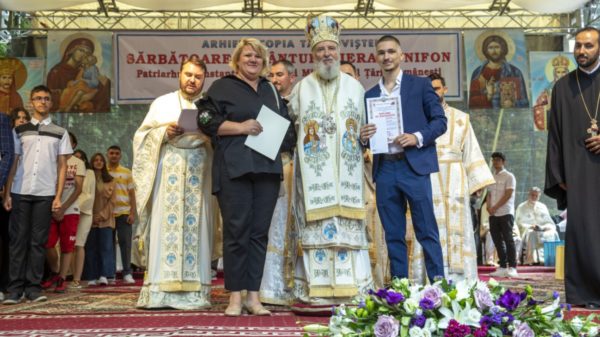 Με την ευκαιρία αυτή, ο Σεβασμιώτατος Μητροπολίτης Τιργοβιστίου και Πατριαρχικός Έξαρχος, κ. Νήφων, που ήγε τα ονομαστήριά του, βράβευσε τους τέσσερις μαθητές της αρχιεπισκοπικής του περιφέρειας, που πήραν το απολυτήριό τους με άριστα, καθώς και τους 17 μαθητές, που κατέκτησαν τις πρώτες θέσεις στην Εθνική Ολυμπιάδα Θρησκευμάτων και στον διεπιστημονικό Εθνικό Διαγωνισμό «Ρουμανικός Πολιτισμός και Πνευματικότητα», καθώς και τους καθηγητές τους.