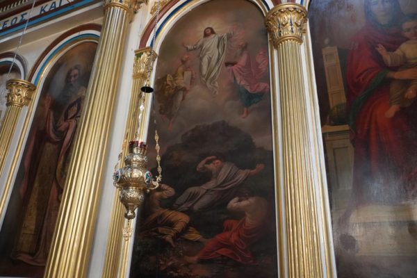 Στην κύρια είσοδο του Ναού της Μεταμορφώσεως, υπάρχει μαρμάρινη πλάκα με χαραγμένα τα ονόματα των ιδρυτών της εκκλησίας: Ανδρέας Πανάς, Δημήτριος Ροδοκανάκης, Κωνσταντίνος Σακομάνος.
