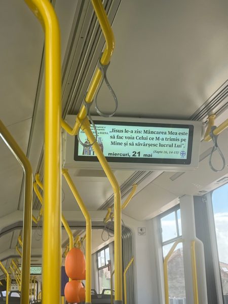 Η Αρχιεπισκοπή Τιμισοάρας ξεκίνησε ένα μοναδικό ιεραποστολικό έργο με την εκπομπή πνευματικών μηνυμάτων σε ψηφιακή μορφή στα μέσα μαζικής μεταφοράς αλλά και σε υπαίθριες πινακίδες, για να φέρει τον λόγο του Θεού σε αστικούς δημόσιους χώρους, ακολουθώντας τις ανάγκες της σύγχρονης εποχής.