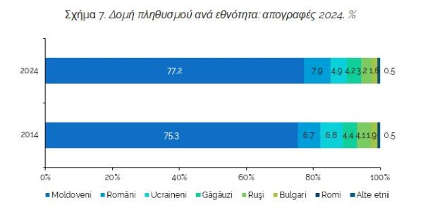 Το 77% των κατοίκων δήλωσαν ότι είναι Μολδαβοί και μόνο το 7,9% Ρουμάνοι: