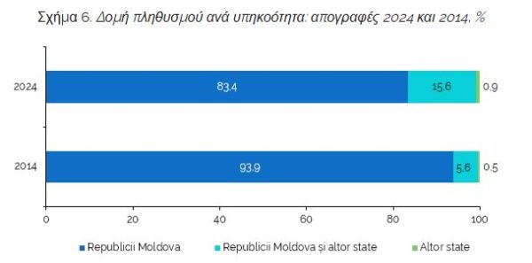 Αν το 2014 μόνο το 5,6% των κατοίκων δήλωνε ότι έχει υπηκοότητα άλλη από αυτή της Δημοκρατίας της Μολδαβίας ή ότι έχει διπλή/πολλαπλή υπηκοότητα, πέρυσι το ποσοστό αυτό έφτασε το 15,6%.