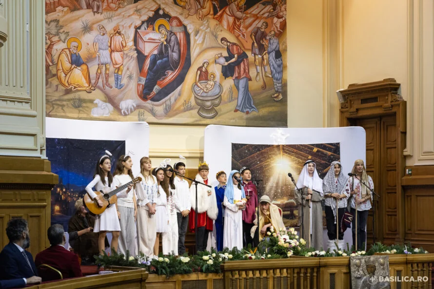 Παιδιά από ενορίες και σχολεία του Βουκουρεστίου έψαλαν κάλαντα και παρουσίασαν καλλιτεχνικές παραστάσεις με χριστουγεννιάτικα θέματα το απόγευμα της Παρασκευής, στην μεγάλη αίθουσα «Πατριάρχης Θεόκτιστος» του Πατριαρχικού Μεγάρου, παρουσία του Μακαριωτάτου Πατριάρχη Ρουμανίας κ.κ. Δανιήλ.