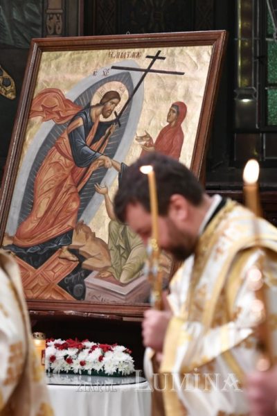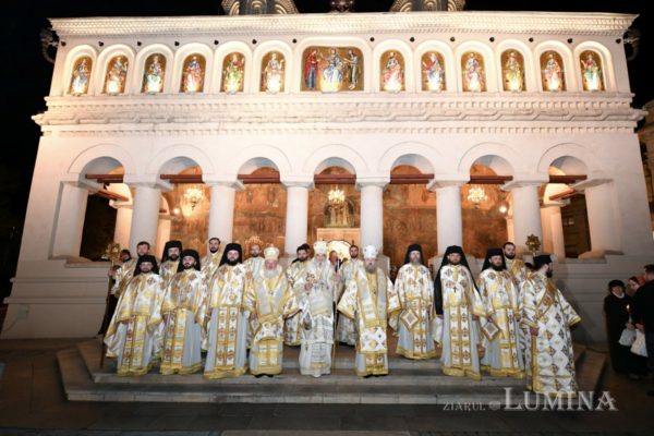 Το βράδυ εκατοντάδες πιστοί είχαν συγκεντρωθεί στον Καθεδρικό Ναό για να εορτάσουν την Ανάσταση. Στην ακολουθία προεξήρχε ο Πατριάρχης Ρουμανίας κ.κ. Δανιήλ πλαισιούμενος από Επισκόπους και κληρικούς του Πατριαρχείου Ρουμανίας. Ο Μακαριώτατος μετέδωσε το Άγιο Φως, το οποίο παρέλαβε λίγη ώρα πριν, στο συγκεντρωμένο και εν συνεχεία έψαλλε μαζί με τους πιστούς το Χριστός Ανέστη.