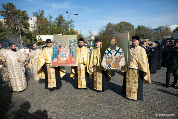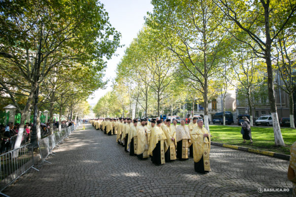 Δύο πομπές είχαν δημιουργηθεί χθες, Δευτέρα 24 Οκτωβρίου: Η μία ξεκίνησε από τον Καθεδρικό Ναό, που έφερε το ιερό λείψανο του Αγίου Δημητρίου του Νέου, με κατεύθυνση την πλατεία Unirii, και η άλλη αναχώρησε από τον Μητροπολιτικό Ιερό Ναό του Αγίου Σπυρίδωνα με τα λείψανα των Αγίων Αυτοκρατόρων Κωνσταντίνου και Ελένης και του Αγίου Νεκταρίου, με κατεύθυνση την ίδια πλατεία.