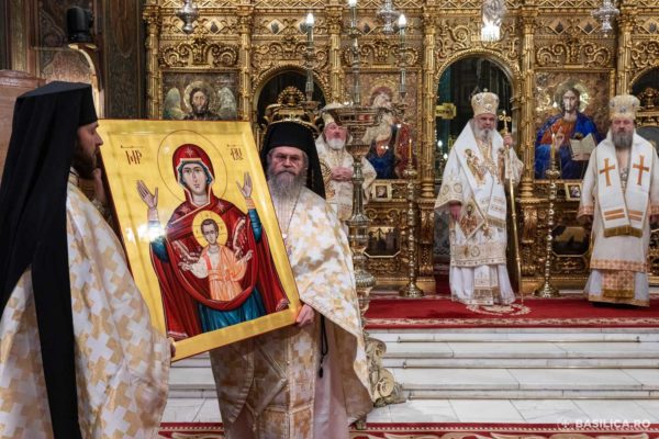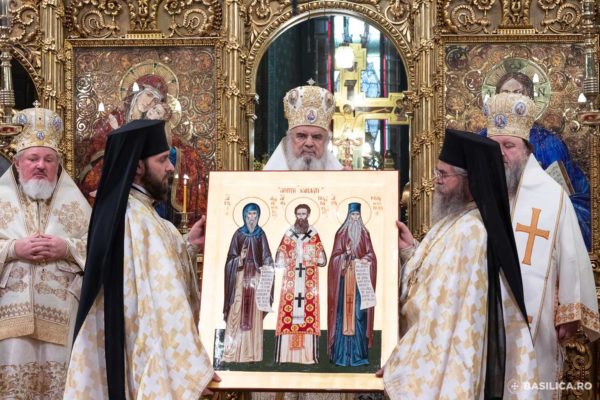 Η τελετή για την καθιέρωση του αφιερωματικού έτους 2022 ολοκληρώθηκε με την επίδοση των δύο εικόνων: της Παναγίας Πλατυτέρας και της εικόνας των Ησυχαστών Αγίων Συμεών του Νέου Θεολόγου, Γρηγορίου Παλαμά και Παϊσίου από το Neamt.