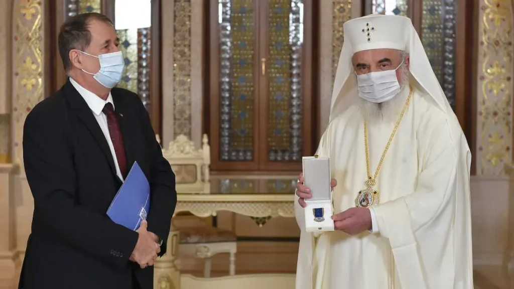 Tο Επετειακό Μετάλλιο «Centenary of the Great Union», για τη συμμετοχή της Εκκλησίας στην προώθηση της εθνικής μνήμης και αξιών, απένειμε το απόγευμα της Τρίτης, 30 Νοεμβρίου, ο Σύμβουλος του Προέδρου της Ρουμανίας, κ. Σέγκιου Νίστορ, στον Πατριάρχη Ρουμανίας κ.κ. Δανιήλ.