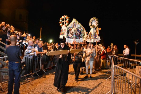 Από το πρωί του Σαββάτου ξεκίνησαν οι εορταστικές εκδηλώσεις με την προσκυνηματική πορεία μέχρι την Ιερά Μονή για να ακολουθήσει ο Πανηγυρικός Εσπερινός και η Λιτάνευση της Εικόνος της Θεοτόκου η οποία ολοκληρώθηκε περίπου στις 2 το πρωί.