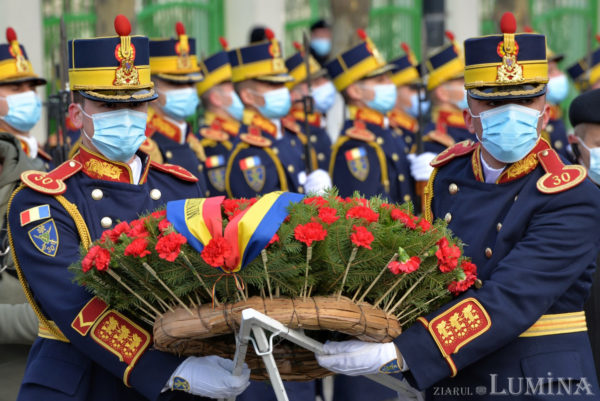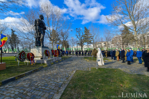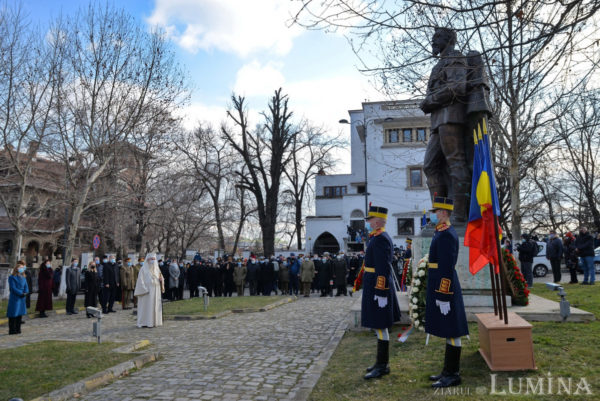 Μετά τη Θεία Λειτουργία κατατέθηκαν στεφάνια στο άγαλμα του πρίγκιπα Alexandru Ioan Cuza κοντά στον Πατριαρχικό Καθεδρικό Ναό.