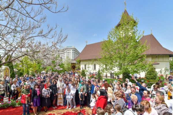 Πλήθος πιστών από το Βουκουρέστι και προσκυνητές συμμετείχαν στις λατρευτικές εκδηλώσεις που διοργανώθηκαν τη δεύτερη ημέρα του Πάσχα για τον εορτασμό του Αγίου Γεωργίου στον οποίο είναι αφιερωμένο το Παρεκκλήσιο του Καθεδρικού Ναού της Σωτηρίας του Έθνους.