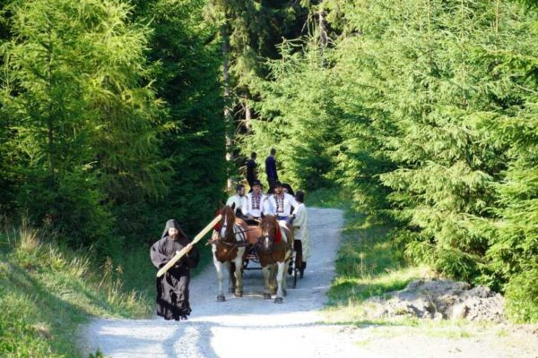Η εικόνα, η παράσταση της οποίας είναι μοναδική στη Ρουμανία, μεταφέρθηκε με άμαξα από το Δημαρχείο της περιοχής Panaci σε απόσταση 7 χιλιομέτρων και σε υψόμετρο 1.700 μ., όπου βρίσκεται ο μοναστικός οικισμός.