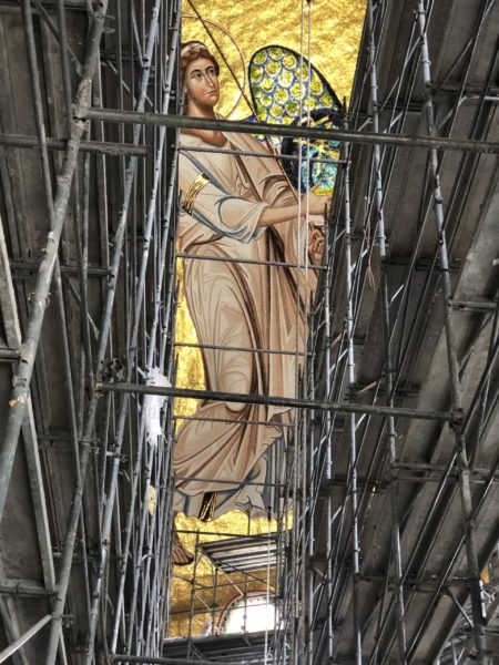 Τα πιο δύσκολα εικονογραφικά έργα, αυτά που βρίσκονται στον θόλο, έχουν ολοκληρωθεί, αλλά οι εργασίες στο βωμό θα συνεχιστούν μέχρι πριν από το Πάσχα. Οι ζωγράφοι πρέπει ακόμα να οριστικοποιήσουν τα διακοσμητικά μοτίβα κάτω από το θόλο της Πλατυτέρας και πρέπει ακόμα να κάνουν τη ζωγραφική με την τεχνική της ψηφιδογραφίας στο πίσω μέρος του καταπετάσματος.