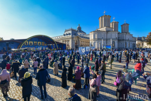 Οι λατρευτικές εκδηλώσεις κορυφώθηκαν χθες με την Πατριαρχική Θεία Λειτουργία που τελέστηκε προεξάρχοντος του Μακαριωτάτου Πατριάρχου Ρουμανίας κ.κ. Δανιήλ στον ειδικά διαμορφωμένο χώρο έξω από τον Καθεδρικό Ναό.