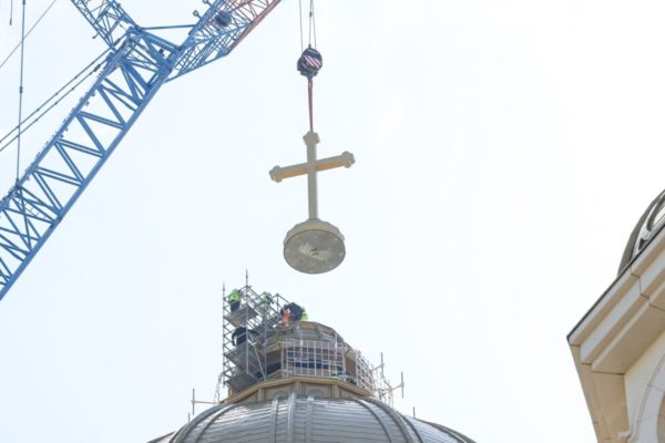 Ένας ειδικός ερπυστριοφόρος γερανός 600 τόνων κατέστησε δυνατή την ανύψωση του σταυρού. Η τοποθέτηση του σταυρού, η οποία αποτελεί κορυφαία στιγμή μηχανικής εξαιτίας των μεγάλων δυσκολιών ανύψωσής του, είχε σχεδιαστεί πριν ενάμιση χρόνο και οι προετοιμασίες είχαν ξεκινήσει πριν από σχεδόν δύο εβδομάδες.